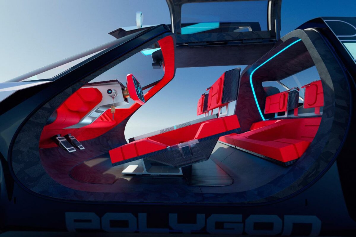 Le Polygon introduit l'Hypersquare, un volant rectangulaire associé à une direction steer-by-wire (sans colonne mécanique). Une première pour Stellantis, développée par JTEKT, filiale de Toyota. L'absence de liaison physique permet théoriquement de libérer l'espace aux genoux et d'ajuster finement le comportement routier.