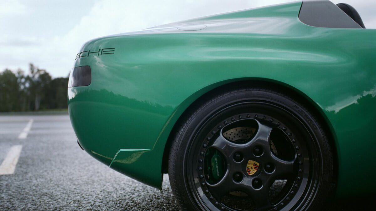 La teinte verte spécialement développée pour le projet constitue un autre élément signature. Ni vert British Racing, ni vert Oak des 911 vintage, cette nuance unique positionne la 968 L'Art dans un espace chromatique inédit. Les optiques avant ont été remplacées par deux bandes LED horizontales qui modernisent radicalement la face avant tout en conservant une certaine parenté avec les phares escamotables d'origine. À l'arrière, les feux redessinés portent l'inscription « KAR » dans une typographie très années 80, créant un effet rétro-futuriste assumé.