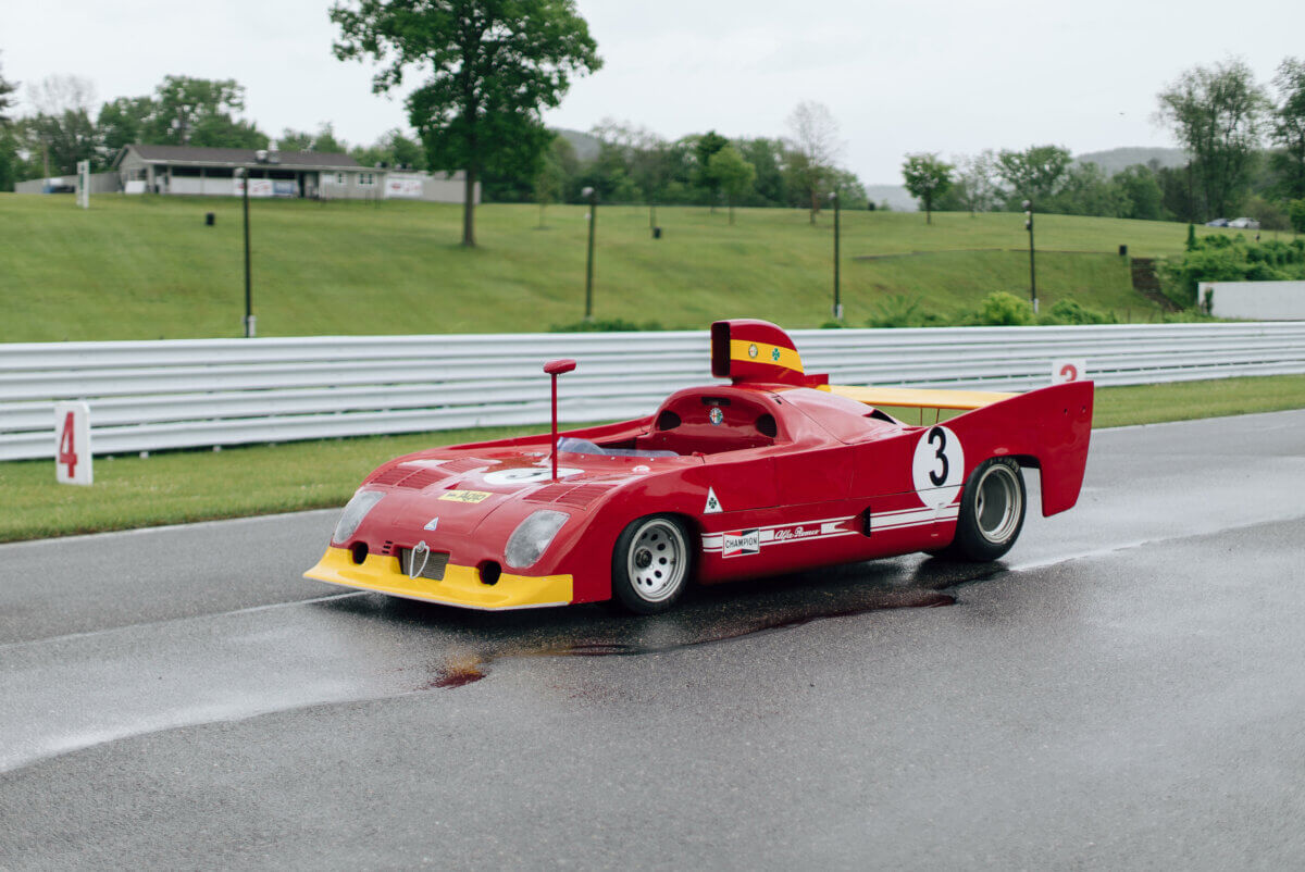 La 33 Stradale n'a jamais été seule. Elle s'inscrit dans une vaste famille de voitures de sport qui ont dominé les circuits entre la fin des années 1960 et le milieu des années 1970. La première version, surnommée « periscopica » en raison de sa grande prise d'air située derrière la tête du pilote, développait déjà 270 chevaux. Cette entrée d'air alimentait non seulement l'injection mais refroidissait également les freins arrière, positionnés à la sortie des demi-arbres de transmission.