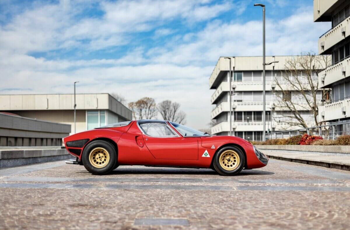 Avec ses 18 exemplaires produits, son moteur V8 de 230 chevaux logé dans une carrosserie de 700 kilogrammes et ses lignes d'une pureté absolue signées Franco Scaglione, la Stradale demeure l'une des automobiles les plus extrêmes jamais conçues par Alfa Romeo.