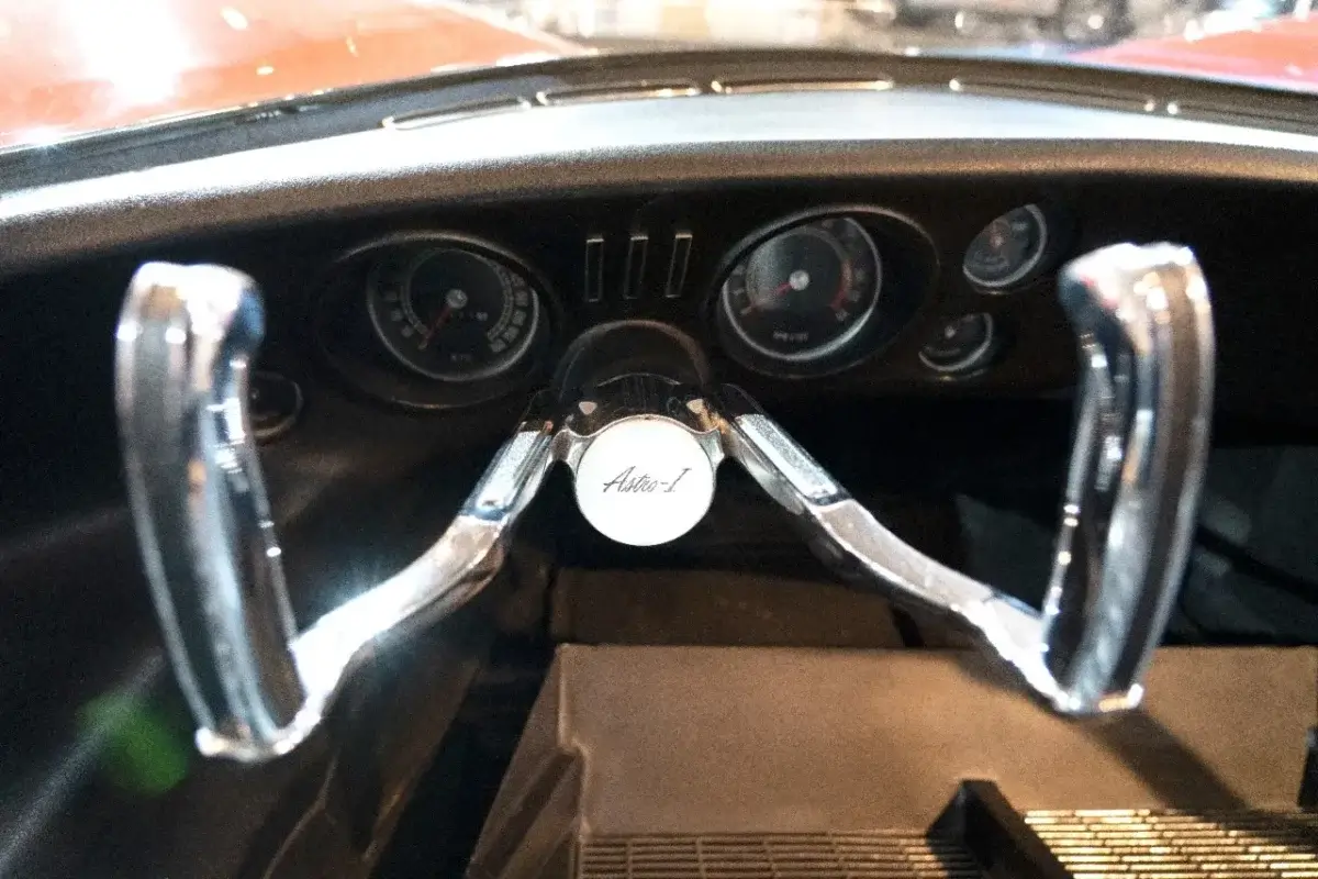 L'Astro I introduit des concepts aérodynamiques radicaux pour 1967. Sa hauteur de 89 centimètres impose des solutions inédites : l'habitacle devient une bulle minimale, les passages de roues se fondent dans la carrosserie, les entrées d'air disparaissent au profit de fentes discrètes. La forme en goutte d'eau inversée, avec sa poupe tronquée brutalement, préfigure les recherches aérodynamiques des décennies suivantes.